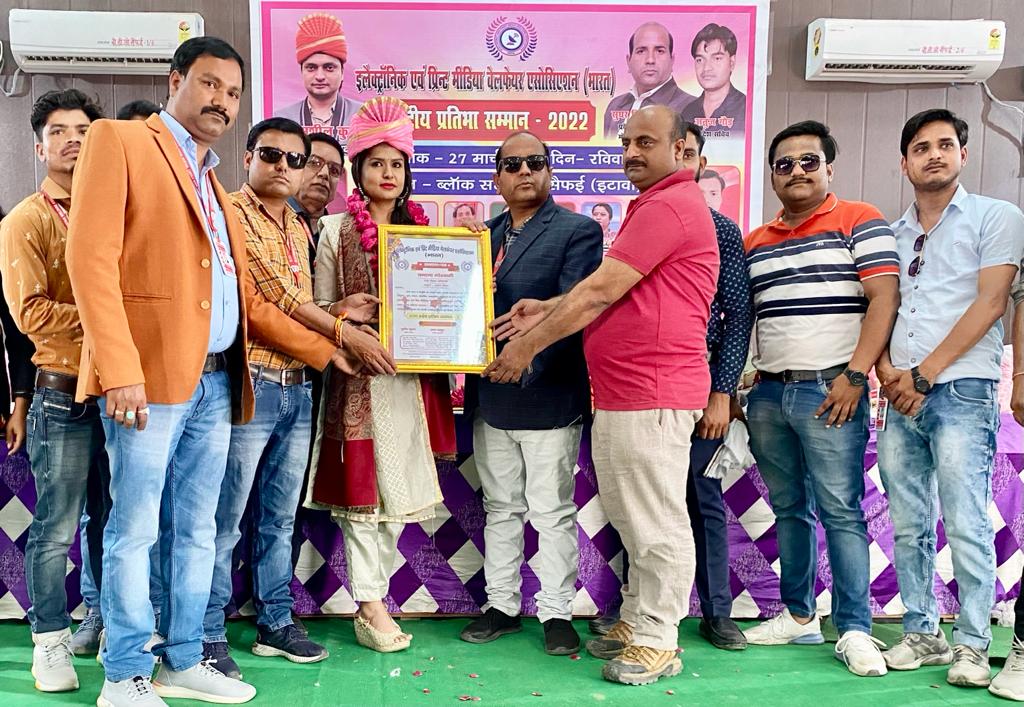 उत्तर प्रदेश : इलेक्ट्रॉनिक एवं प्रिंट मीडिया वेलफेयर एसोसिएशन भारत द्वारा सैफई में सामाजिक कार्यकर्ता, टेली फिल्म अभिनेता – अभिनेत्री, फ़िल्म निर्माता, रंगकर्मी, कवि, इंस्टाग्राम स्टार, मॉडल, डांसर को सम्मानित किया गया। सभी को यह सम्मान सामाजिक कार्यों व कोरोना कॉल में पीड़ितों की मदद, व उनके अभिनय के लिए दिया गया।