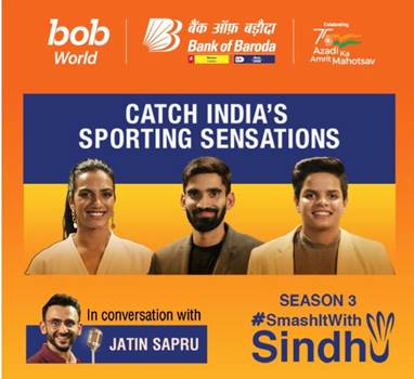 New Delhi, August 29, 2022: On National Sports Day 2022, Bank of Baroda (Bank) released the third edition of #SmashItWithSindhu to celebrate the achievements and to support the undying spirit of the Indian sporting fraternity. The latest edition is bigger and better with the Bank bringing together ace shuttler Kidambi Srikanth and India’s young batting sensation Shafali Verma joining Olympic medalist PV Sindhu in an exciting and fun conversation with television host Jatin Sapru.