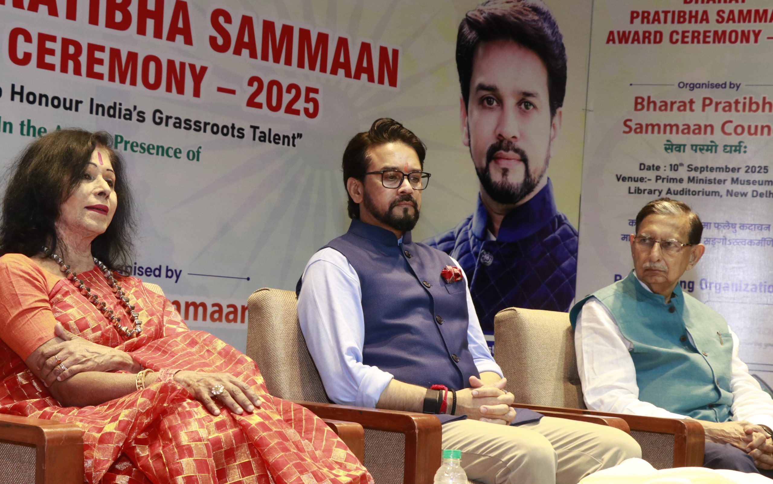 मुख्य अतिथि पूर्व केंद्रीय मंत्री माननीय अनुराग ठाकुर ने अपने संबोधन में कहा कि भारत प्रतिभा सम्मान परिषद का यह प्रयास सराहनीय है, क्योंकि यह उन वास्तविक जीवन के परिवर्तनकारी व्यक्तित्वों को सामने लाता है, जो चुपचाप एक बेहतर भारत के निर्माण में योगदान दे रहे हैं।